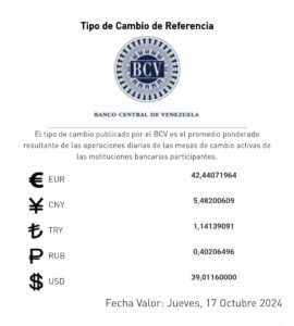 - Dólar: Bs. 39,01