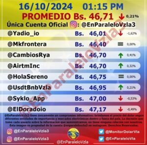 Lea también: Así amaneció el precio del dólar BCV y Paralelo HOY, miércoles 15 de octubre