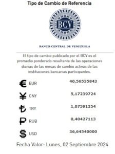 Para este lunes 2 de septiembre el precio del dólar estará en 36,64 bolívares y el euro en 40,56 bolívares según el Banco Central de Venezuela (BCV).