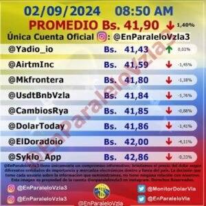Hoy a las nueve de la mañana el dólar paralelo cotiza en 41,90 bolívares.