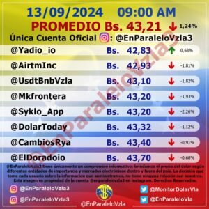 Lea también Precio del dólar BCV sube para este jueves #12Sep