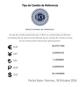 En cuanto al euro, en el BCV se cotiza en Bs. 42,37 y en Monitor Dólar indica que está en 51,63 bolívares por euro.