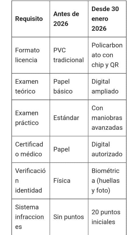 Esta tabla resume las diferencias clave en nuevas normas permiso conducir Venezuela.