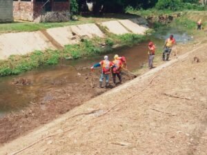 En este sentido, para los trabajos de remoción de escombros y desechos vegetales a lo largo del tramo del canal de La Charneca en Morón, las cuadrillas de Carabobo Te Quiero se desplegaron a lo largo del mismo, haciendo uso de las herramientas de rigor como rastrillos, palas, cepillos, carretillas, entre otros, además de la activación de maquinaria especial tipo retroexcavadora, en un trabajo conjunto con la alcaldía de Juan José Mora.