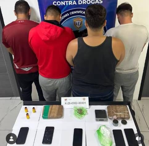 Funcionarios del Cuerpo de Investigaciones Científicas, Penales y Criminalísticas (Cicpc) detuvieron a cuatro hombres por tenencia de presunta sustancia ilícita denominada marihuana.