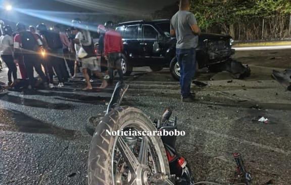 Un fuerte hecho de tránsito se registró en la Carretera Nacional Guacara-San Joaquín, específicamente a la altura del sector La Camachera, involucrando a un motorizado y un vehículo tipo camioneta.