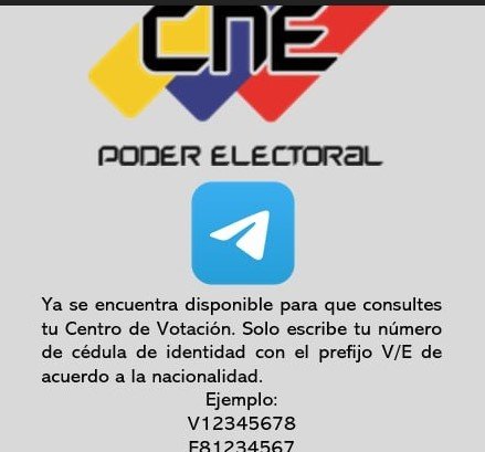 Así lo informó el CNE en su canal de Telegram donde señaló: Ya se encuentra disponible para que consultes tu Centro de Votación. Solo escribe tu número de cédula de identidad con el prefijo V/E de acuerdo a la nacionalidad.