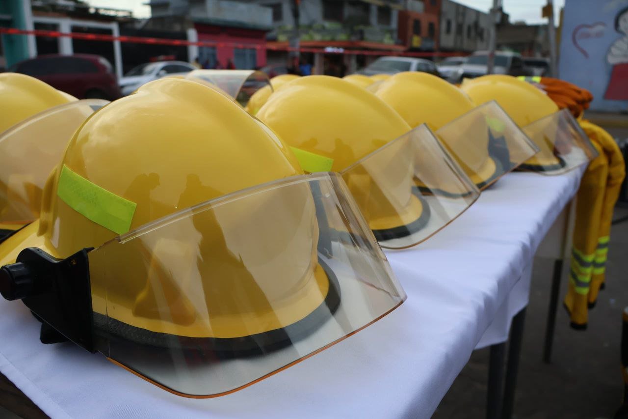Asimismo, los efectivos bomberiles recibieron nuevo equipamiento, entre ellos botas, cascos y guantes especializados, con el objetivo de mejorar sus condiciones de trabajo y garantizar mayor seguridad durante las operaciones.