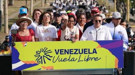 La presidenta encargada, Delcy Rodríguez, encabezó este martes el arribo a Carabobo de la «Gran Peregrinación Nacional por una Venezuela sin Sanciones y en Paz», una movilización que busca recorrer el país con un mensaje claro: ni bloqueos ni imposiciones.