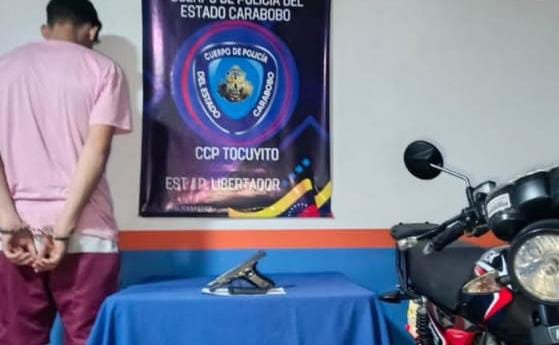 Funcionarios de la Policía de Carabobo, adscritos al Centro de Coordinación Policial Tocuyito, detuvieron a un joven de 20 años por el presunto delito de porte ilícito de arma de fuego durante un procedimiento realizado en el municipio Libertador.