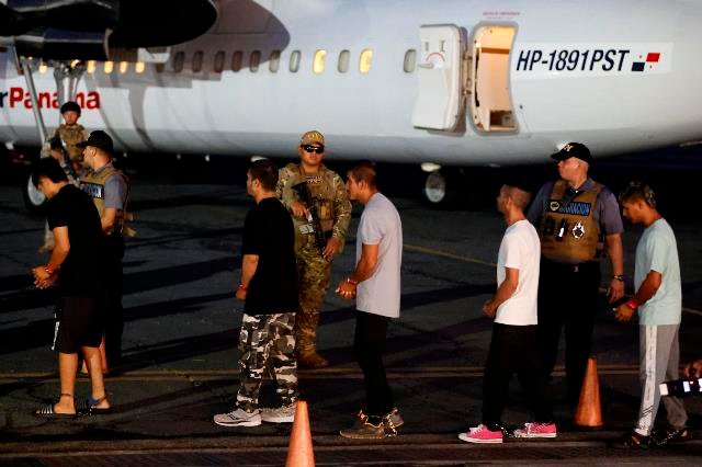 Los viajeros desembarcaron esposados en el aeropuerto Marcos A. Gelabert en Panamá, mejor conocido como la terminar de Albrook, donde tras una serie de procedimientos migratorios, abordaron una nueva aeronave que partió a las 06:00 hora local con dirección a Colombia.