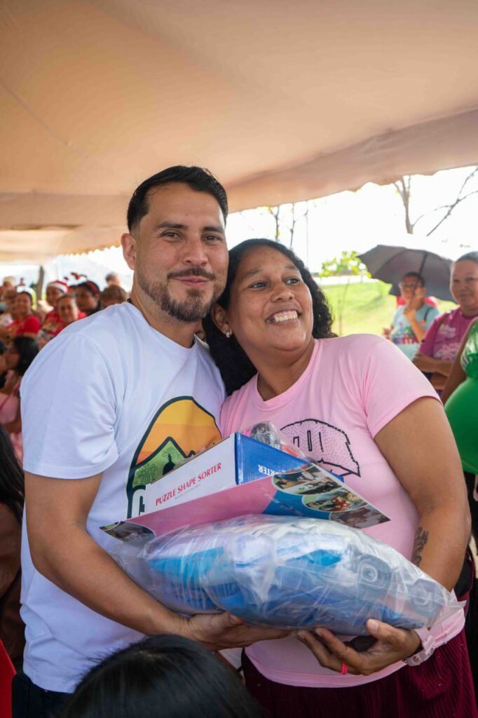 La celebración tuvo un momento especialmente emotivo con la participación de madres beneficiadas en entregas anteriores. Ellas acudieron con sus bebés, quienes recibieron como obsequio navideño andaderas y un presente, simbolizando la continuidad del apoyo municipal y la celebración de la primera infancia.
