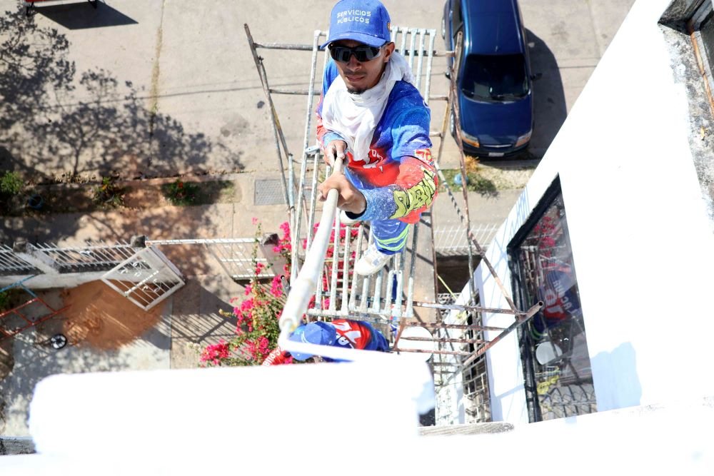 El proyecto, contempla la renovación de la pintura exterior de los edificios, que desde la primera etapa de estos trabajos se realizó un fondo antialcalino para remover la pintura antigua, de esta forma evitar daños en su infraestructura y proceder a aplicar el nuevo esmalte, acción dirigida a fomentar un entorno más agradable y seguro para todos los residentes.