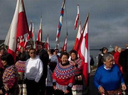 Groenlandia ha estado poblada desde hace aproximadamente 4.500 años por diferentes pueblos árticos que emigraron hasta allí. Durante unos 400 años, a partir del 986 d. C., el sur de la isla también estuvo habitado por nórdicos en colonias establecidas por el vikingo, comerciante y explorador noruego Erik el Rojo. Luego, en los años 1200, los primeros inuits, el conjunto de pueblos que habitan los territorios del Ártico, llegaron a Groenlandia y desde aquel entonces constituyen la mayoría de la población.