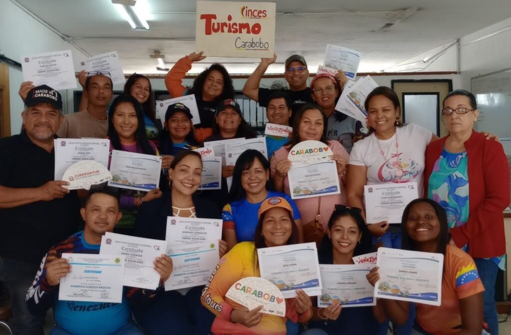 Prestadores de servicios turísticos que participaron en talleres formativos en las áreas de Turismo, Ecología y Ambiente, así como Primeros Auxilios Básicos, recibieron sus certificados avalados por la autoridad única de turismo de la entidad, Solimar Rivero, el Instituto Nacional de Capacitación y Educación Socialista (Inces) y el Instituto Nacional de Turismo (Inatur).