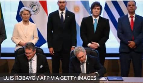 Tras casi un cuarto de siglo de negociaciones, el Mercado Común del Sur (Mercosur) y la Unión Europea (UE) firmaron este sábado el acuerdo que crea la zona de libre comercio más grande del mundo.