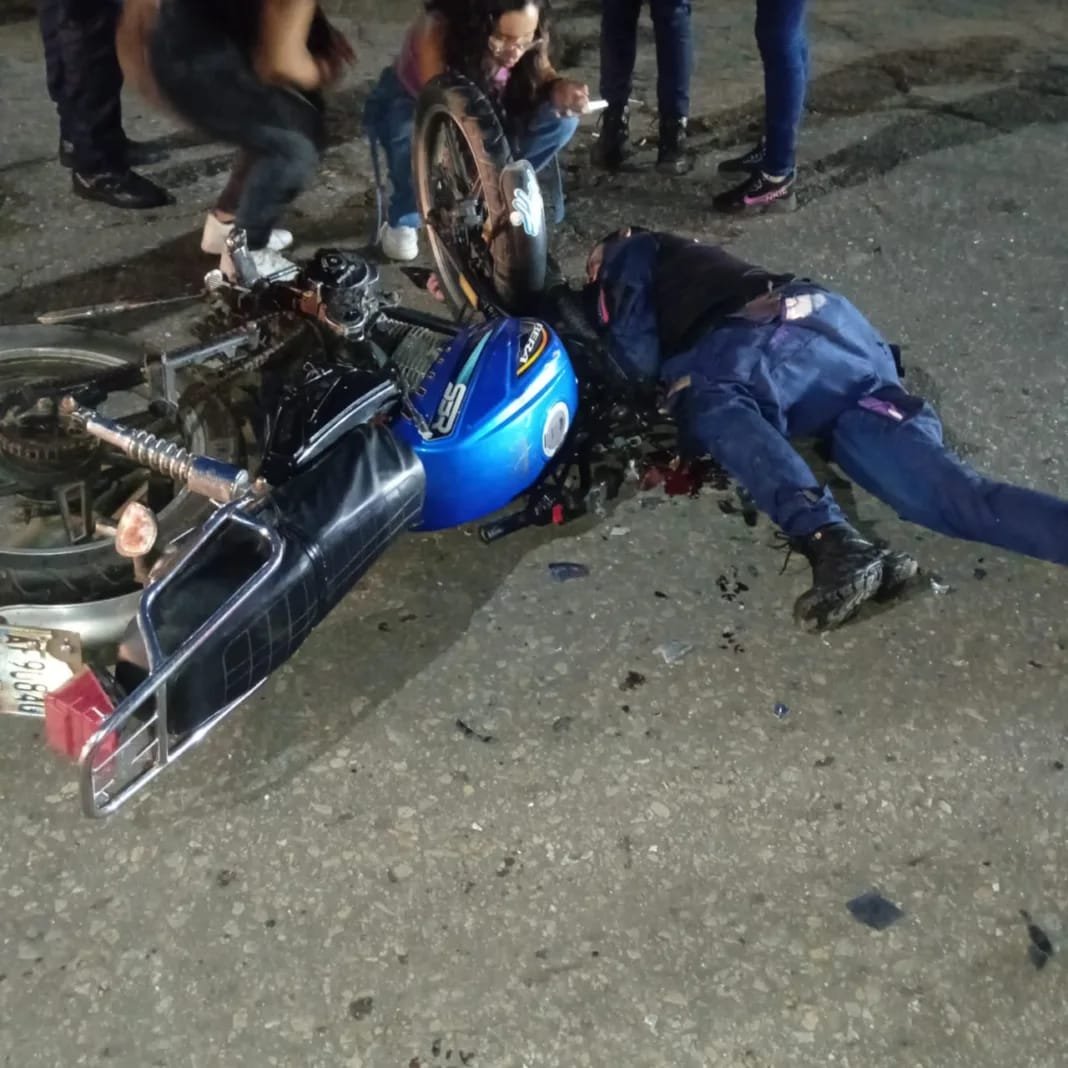Aunque Alfonzo Chirinos falleció en el acto, su compañero Jesie Rafael Abreu, de 35 años, se salvó presentando algunas lesiones y llevado al centro asistencial, junto a las dos personas que viajaban en la otra moto.